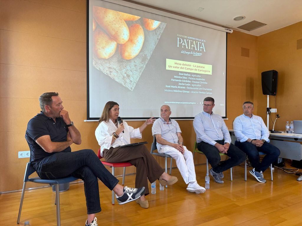El programa ha incluido una primera mesa redonda bajo el título ‘La patata: un valor del Campo de Cartagena’, con la participación de agricultores y representantes de empresas como José Baños, Mónica Díez (Patatas Meléndez), Fernando Córdoba (Patatas Córdoba), Javier León y José María Alcaraz (Restaurante Los Churrascos). Todos ellos han coincidido en subrayar la singularidad de estas variedades, recogidas a mano y con una llegada temprana a los mercados.